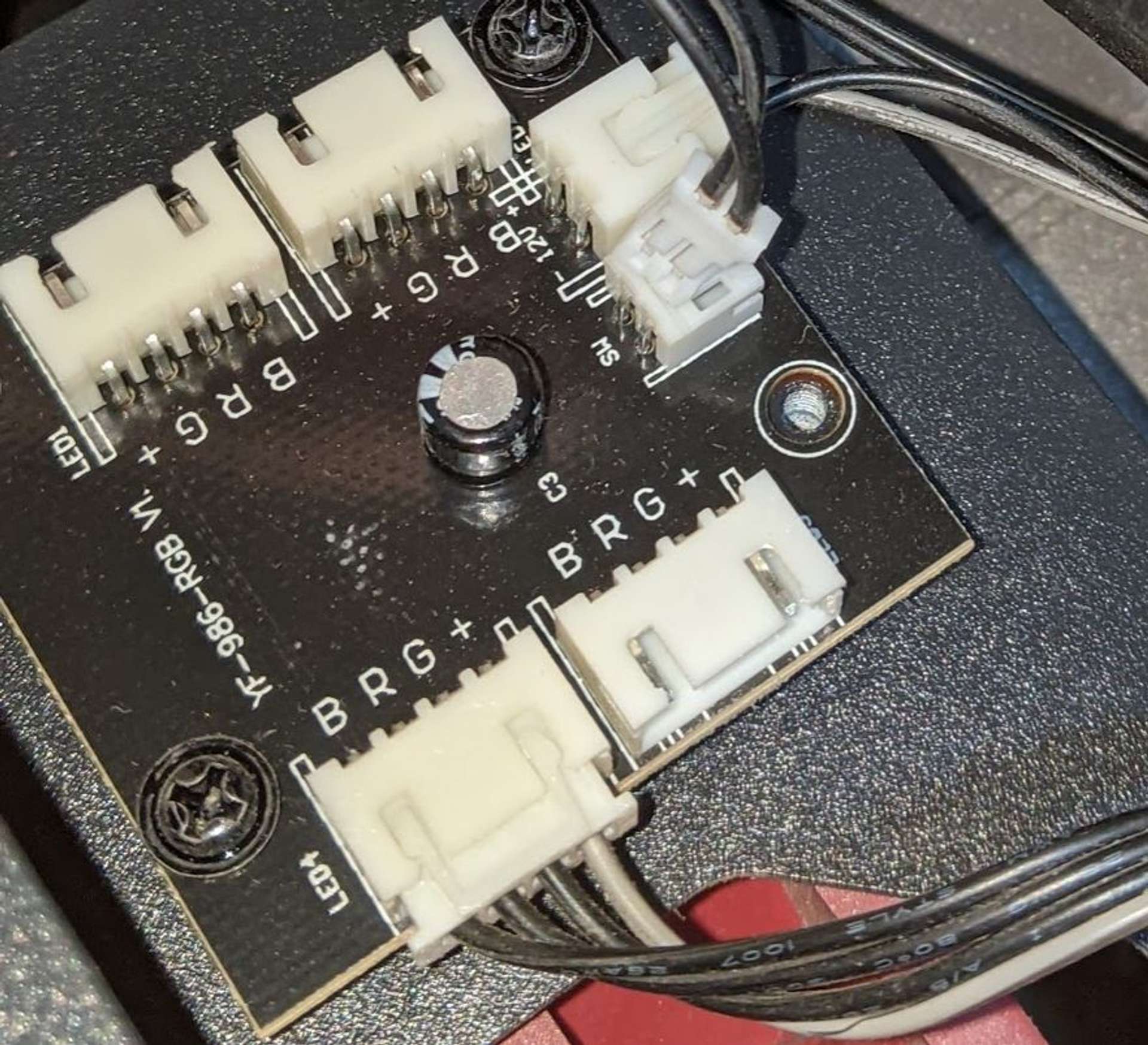 LED控制器會有下面兩條4pin母公延長線,右上一條4pin前面板,3pin 電源輸入,LED按鍵的2pin。
