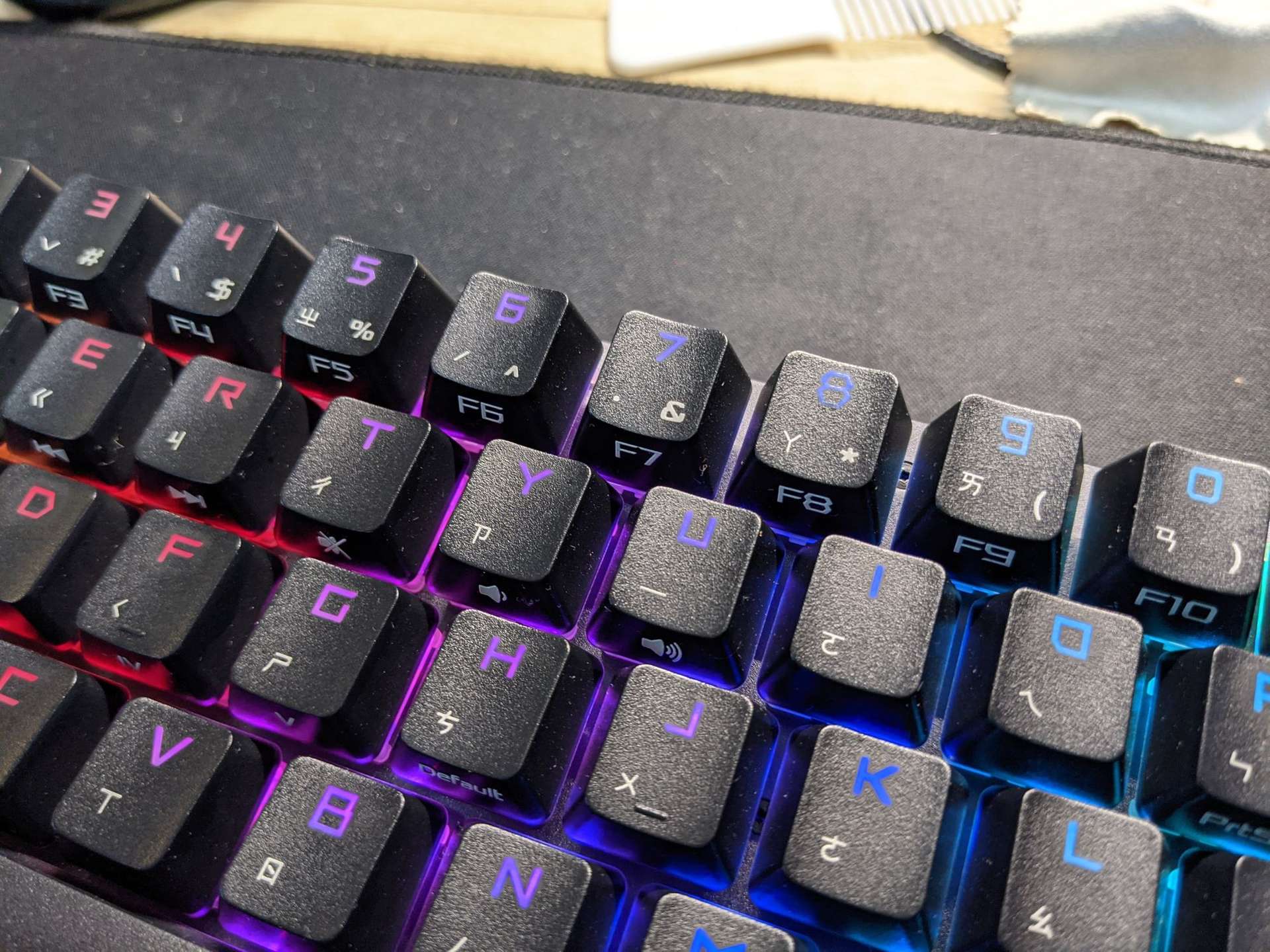 鍵帽是霧面更一半鍵盤亮面的不太一樣PBT,而這紅軸回彈感覺曾經借過的Vortexgear Tab 75還要回彈速度還要快,可以是鍵帽的不一樣的關西吧,鍵帽就是一般標準的樣子,不像是Vortexgear Tab 75面積會偏小,但是鍵帽的字體真的是很醜,發光的亮度不是很均勻。