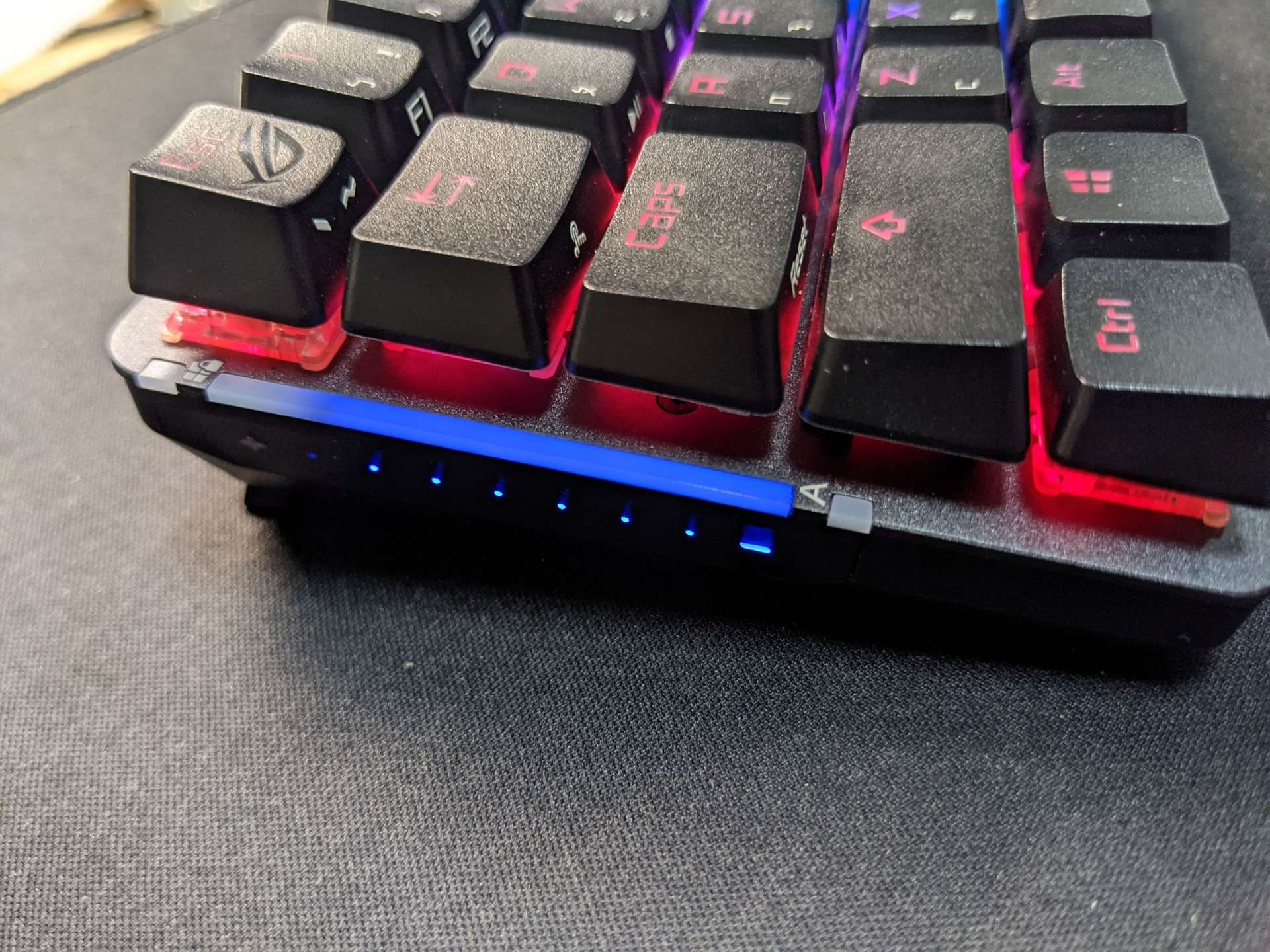 軟體用Armoury create跟主機板可以連動很方便,但是鍵盤Armoury create讀取很慢,剛出廠韌體版本3~5秒還會失敗,更新後至少才不會瘋狂轉圈圈,而內建的fn組合鍵並沒有NuM number可以使用,可以能使用profile去設定切換設定檔才能使用,aura sync的設定也會因為待機而自動解除不會自行回復。