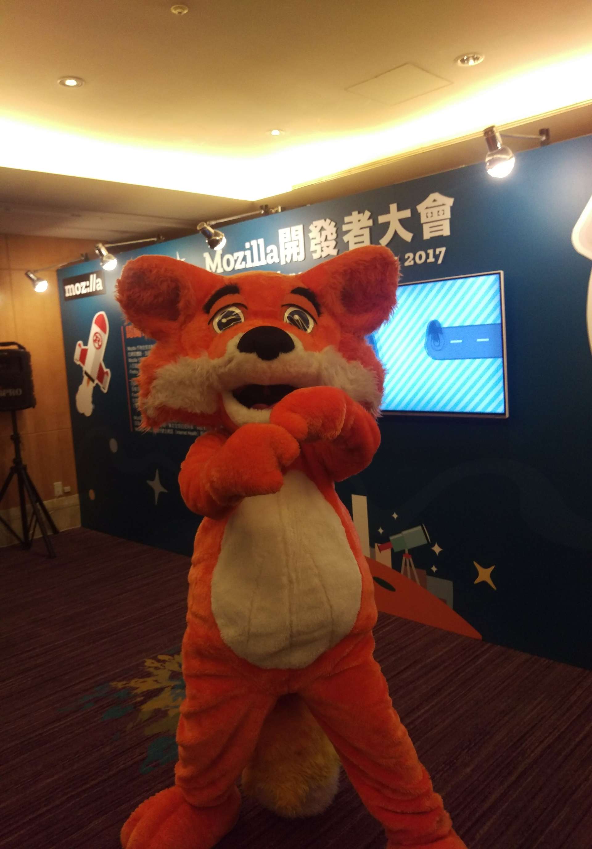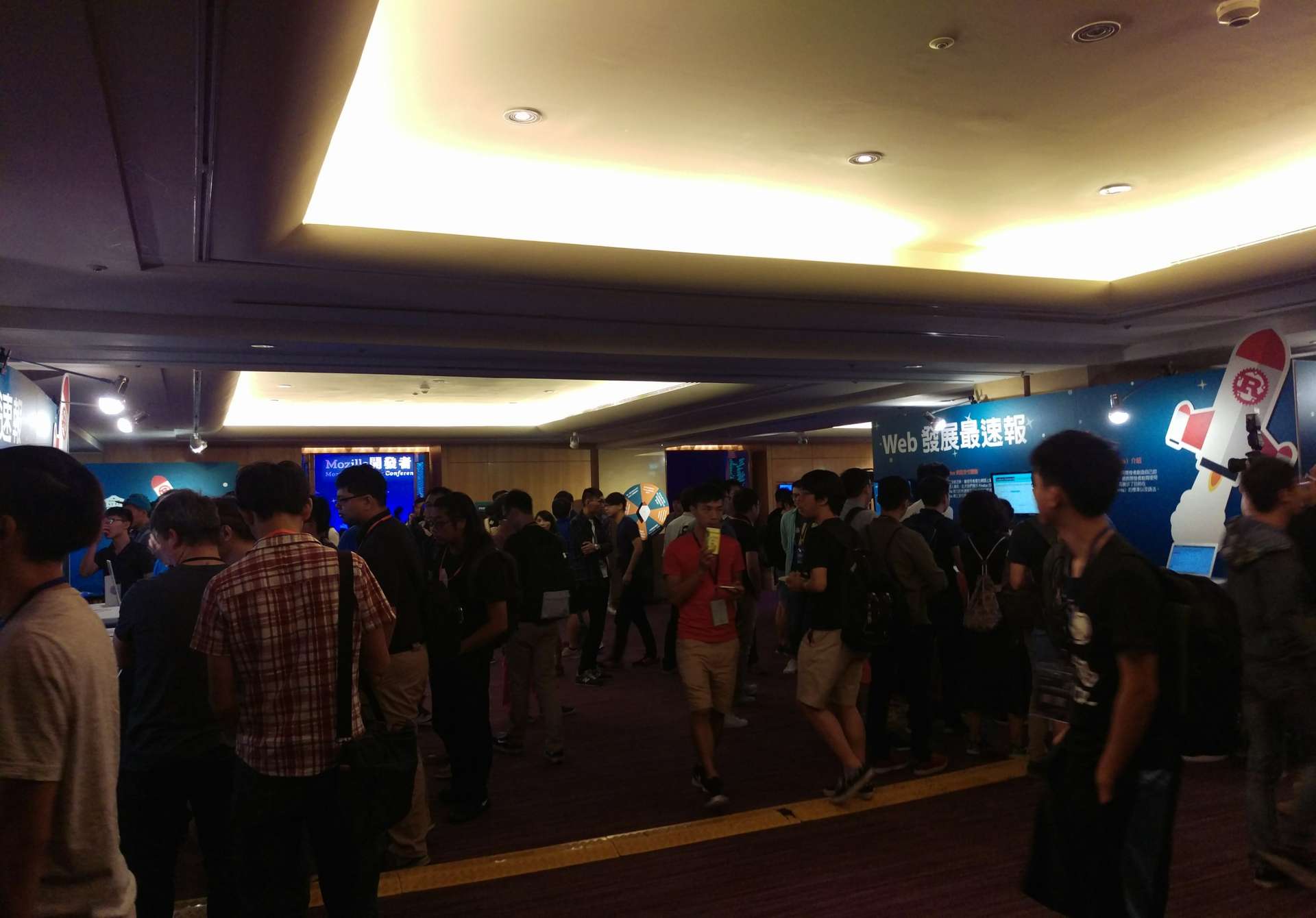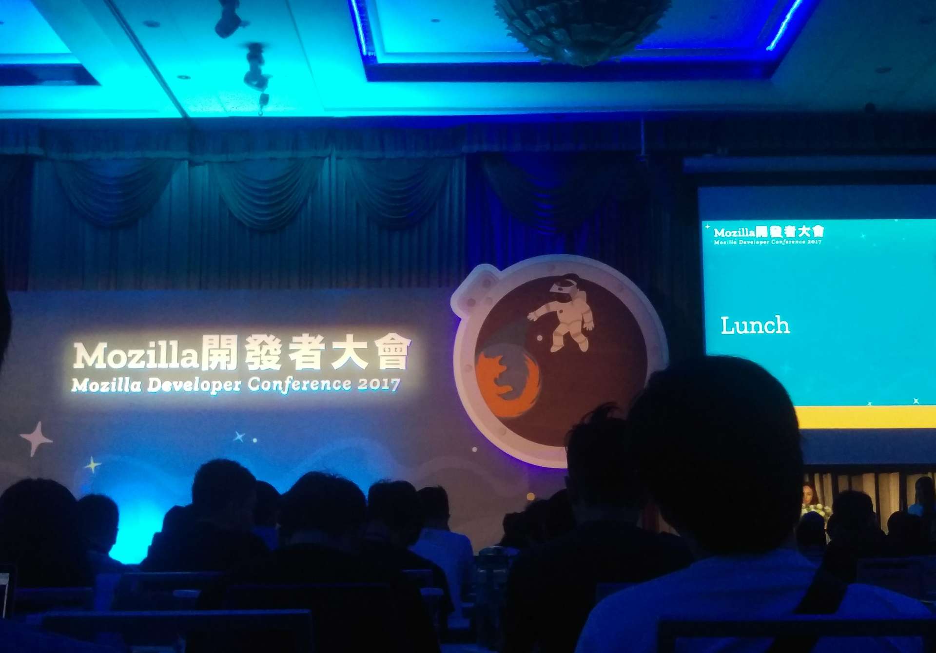 吃完之後該來運動一下了,在中央會廳有擺了四個區塊攤位,去參觀互動一下可以換貼紙,集滿四張可以去轉蛋換獎品,攤位的部分有 VR 跟 webGL 2 可以試玩、Extention 相關開發、Firefox 也實作付款 API Demo,Web RTC 影像應用,Firefox Nightly 跟 Firefox Focus 推廣。